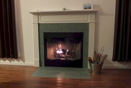リビング室のビルトインした暖炉とマントルピース