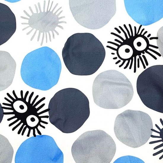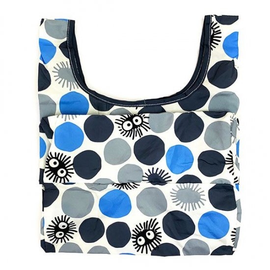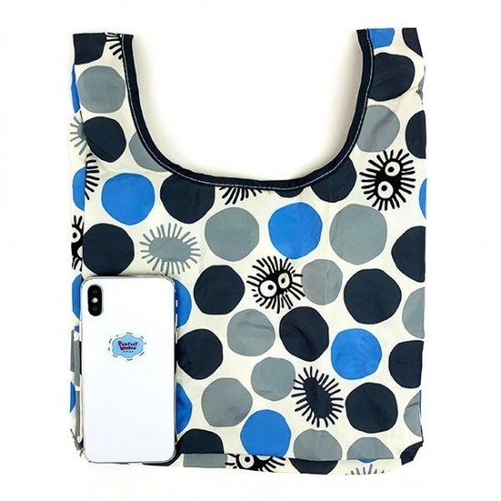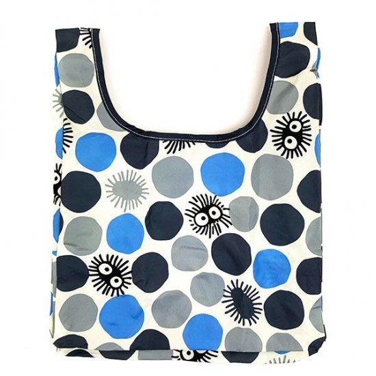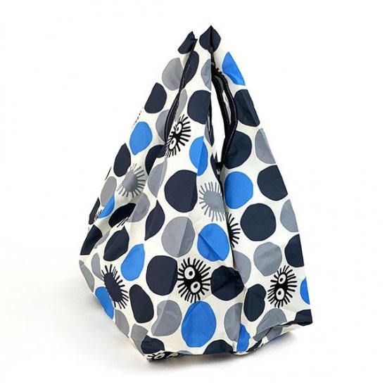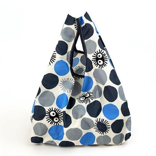 まず最初にご紹介するのは、となりのトトロミニエコバッグです。こちらはまっくろくろすけパターンのちょっと珍しいデザイン。不規則にカラーリングされたドットにまっくろくろすけが隠れている、大人も持ちたいエコバッグ。