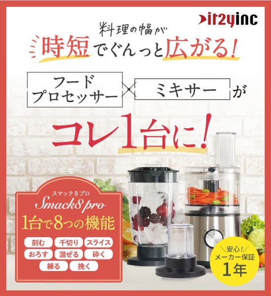 【栄養士亜緒さんのレシピ付き】時短でおいしい料理が簡単に作れるマルチブレンダー『Smack8pro』(スマックエイトプロ)の発売を開始します。