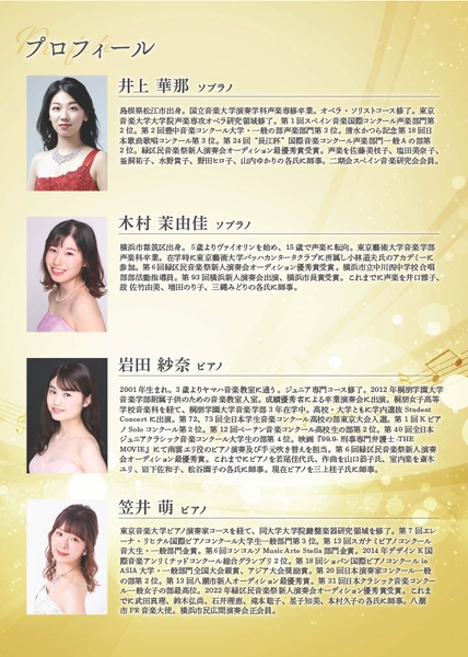出演者は声楽部門:井上華那・木村茉由佳、ピアノ部門:岩田紗奈・笠井萌。