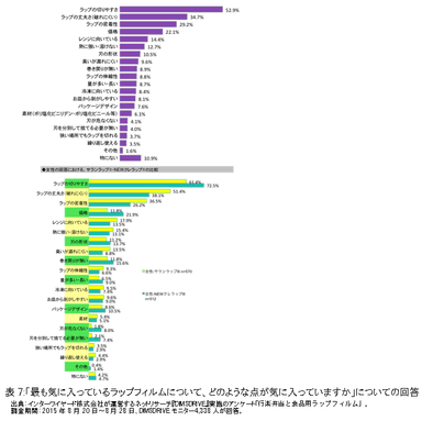 ところで、「切りやすさ」と「丈夫さ(破れにくい)」は、実は、相反する特性と言えます。“ラップなんてどれも同じ”と思われがちですが、消費者は、それぞれの特性を認知し、自分が求める特性に応じて、お気に入りのラップを選んでいるようですね。