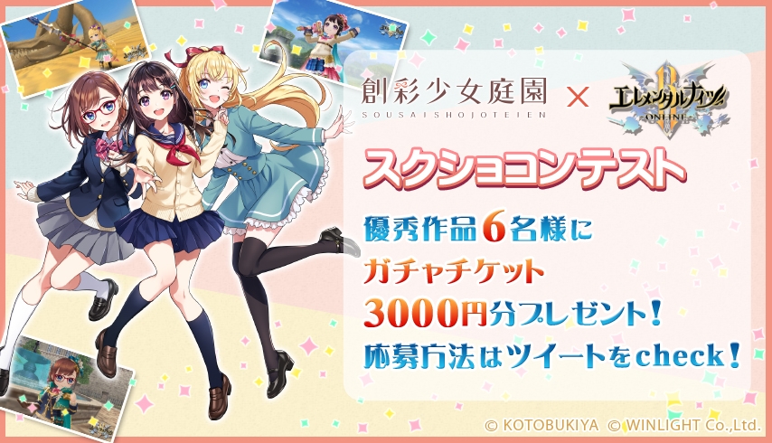 株式会社ウインライトは、MMORPG『エレメンタルナイツR』にて、6月24日(木)メンテナンス後より、株式会社壽屋の"創る" "彩る"をテーマにした女の子プラモデルシリーズ『創彩少女庭園』とのコラボイベントを開始いたしました。