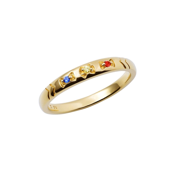 3つのリボンにカラーストーンをセット。内側には名前刻印を施しました。
