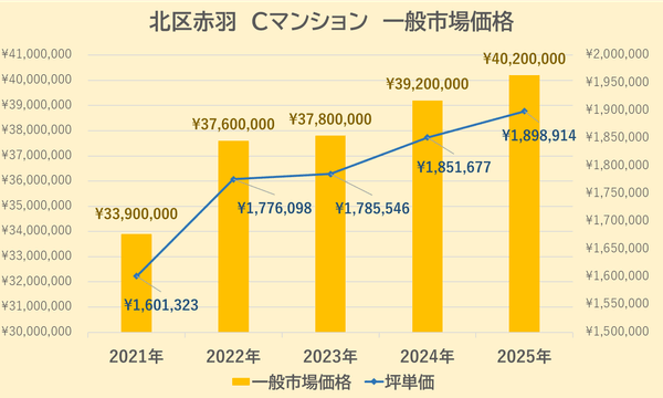 Cマンションの一般市場価格・坪単価の推移は上記【図5)の通りです。