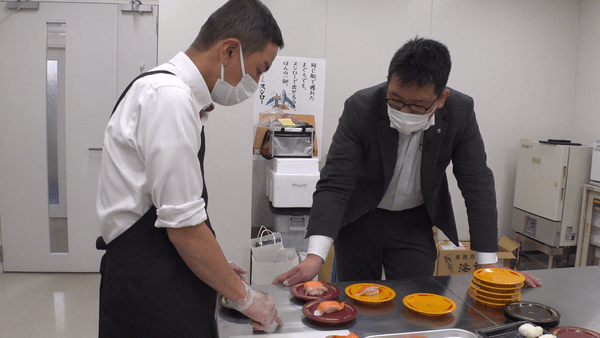 青森から生のまま届けられた新鮮な“国産サーモン”のメニュー開発をするのは、年間約1200種類ものメニューを生み出す商品開発部の吉田部長。味や見た目へのこだわりはもちろん、作りながら同時に原価や販売価格、提供する数なども想定していきます。さまざまなアレンジを加えて次々と別メニューに仕立てていく吉田部長。『スシロー』の原価率は販売価格の50%ほどまでと決まっているため、貴重な“国産サーモン”を全部使い切ることを前提に考案していきます。