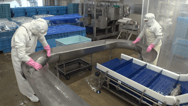 「包丁を加えれば加えるほど劣化する」「スピードが命」と話す浅田さん。水揚げしてすぐに血抜きと冷却を行なってから、青森市内の加工場で内臓をすべて取り除き、臭みのもとになる血液を熟練の職人さんの手で丁寧に吸い出していきます。翌日には別の加工場で頭と皮、骨を外した状態にし、水揚げから3日で『スシロー』の各店舗に届けられるスピーディーな仕組みを作り上げました。