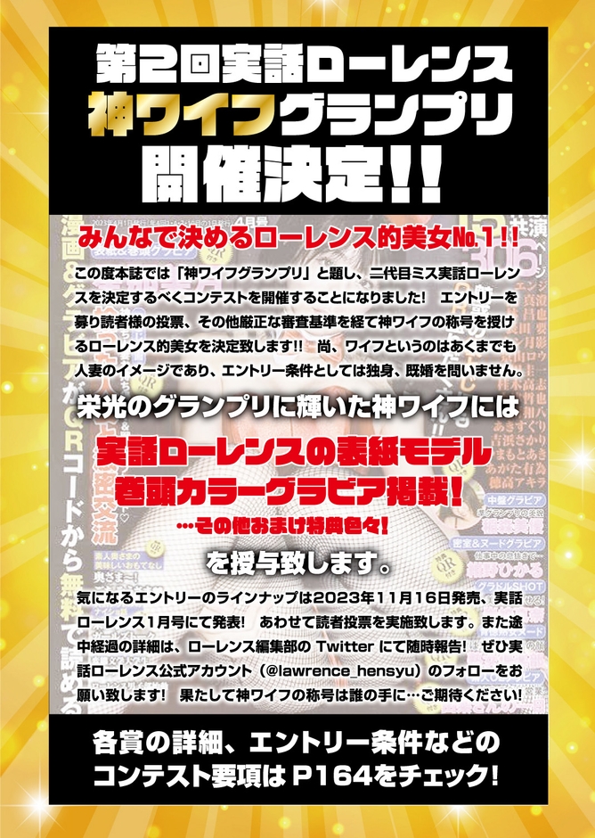 辰巳出版「実話ローレンス」が第二回『神ワイフグランプリ』を開催!