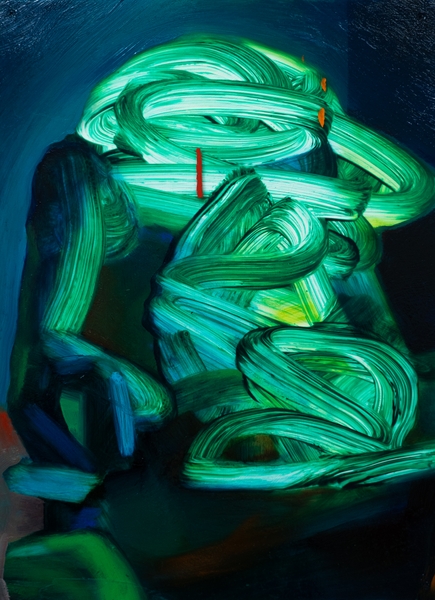 光の画面の色調を、絵の具(アナログ)で表現している仕掛けや紙やキャンバスは絵の具が支持体に浸透しますが、アクリル板の絵の具は絵の具そのものの質感が残り、その異なる絵の具の偶然性が生み出す抽象さは、鑑賞者が自分の感覚を無意識に投影してしまう魅力があります。