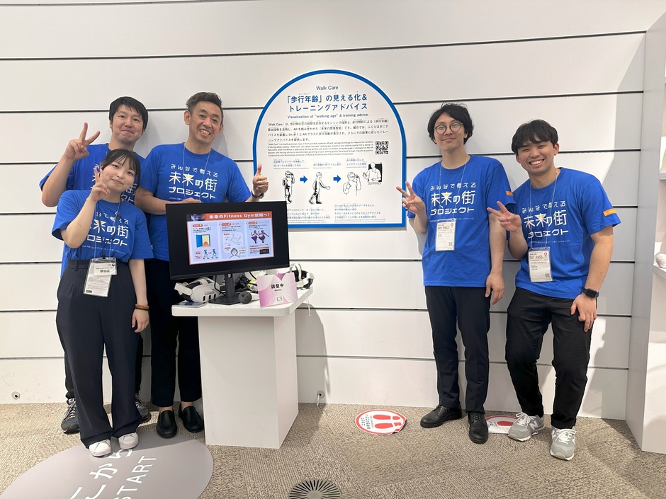 6月17日から23日にかけて、大阪ヘルスケアパビリオン「リボーンチャレンジ みんなで考える未来の街プロジェクト」に出展しました。期間中は多くの来場者がブースを訪れ、Walk Care~未来のFitnessジム~を体験!連日長蛇の列ができるほどの盛況ぶりで、体験いただいた皆さんからは「こんなに早く測定できるの?」「目の前のアバターと同じ動きをするだけだから簡単!」「しっかり足に効いて鍛えられた!」などの感想をいただきました。8月20日の催事でも体験できますので、皆さんぜひお越しください。