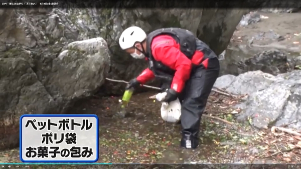 急流と緩流が入れ替わる全長約5kmのコースを、ゴミを拾いながらラフティングで下ります。