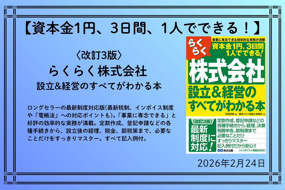 【資本金1円、3日間、1人でできる!】『〈改訂3版〉らくらく株式会社 設立&経営のすべてがわかる本』2026年2月24日(火)刊行