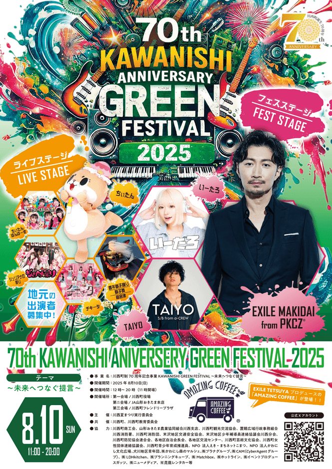 川西町制70周年記念事業 KAWANISHI GREENFESTIVAL 2025 ~未来へつなぐ提言~ BUZZPRODUCTION〈バズプロダクション〉所属 TAIYO S/B from a-CREW 出演決定!