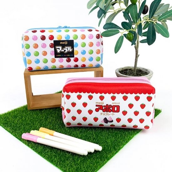 昔から愛されるこのいちご柄もとってもカワイイのですが、実はマーブルチョコ柄のペンケースもあるんです!気になった方は是非チェックしてみてくださいね♪