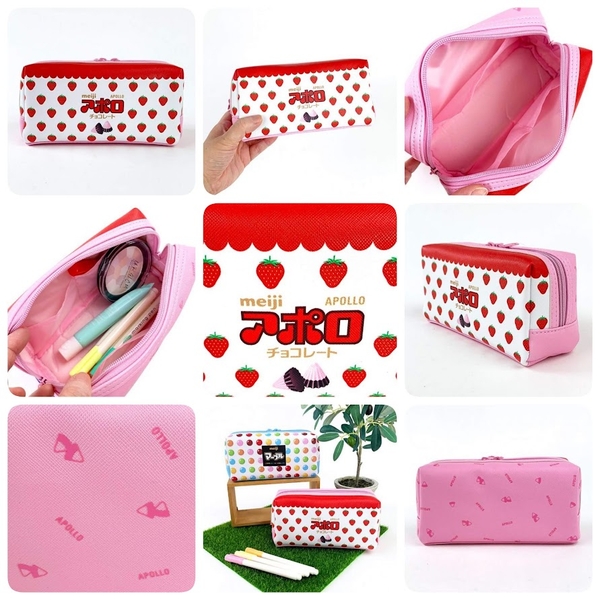 今も昔もいちご柄が女子と食いしん坊の心をくすぐり続けるアポロ☆ペンケースになってもやっぱりかわいかった!