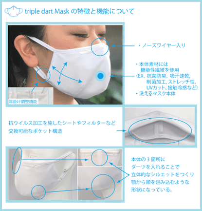 抗菌・抗ウイルス機能繊維フィルター附属、抗菌抗臭マスク「triple dart Mask(トリプルダーツマスク)」を販売中!