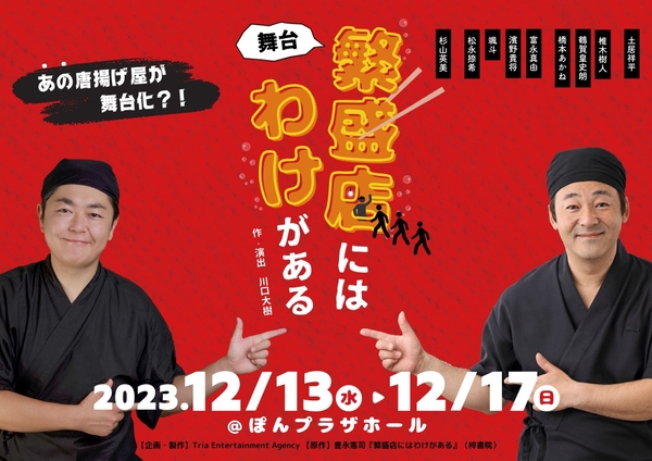 TEA公演主催、舞台『繁盛店にはわけがある』が2023年12月13日 (水) ~2023年12月17日 (日)にぽんプラザホール(福岡県福岡市 博多区祇園町8番3号)にて上演されます。