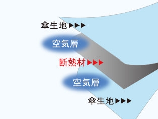 傘の生地と生地の間に特殊な断熱シートを挟むことで、