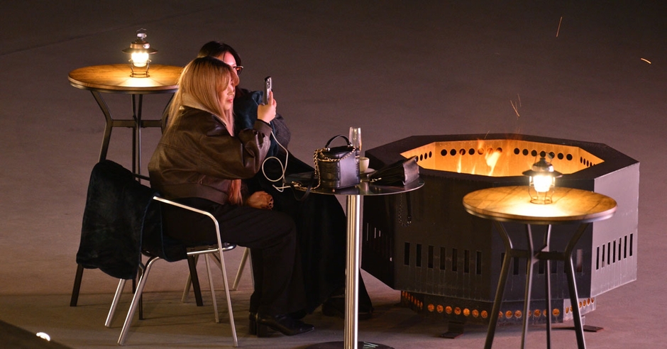 焚火(ファイヤーピット): テラス各所に設置された焚火が、視覚的な暖かさと心地よい温もりを提供し、非日常的な空間を演出。夜景とともに炎の揺らめきをお楽しみいただけます。暖かいブランケットも多数ご用意しており、冷え込む夜も安心して音楽と夜景をご堪能いただけます。