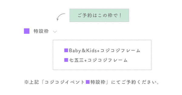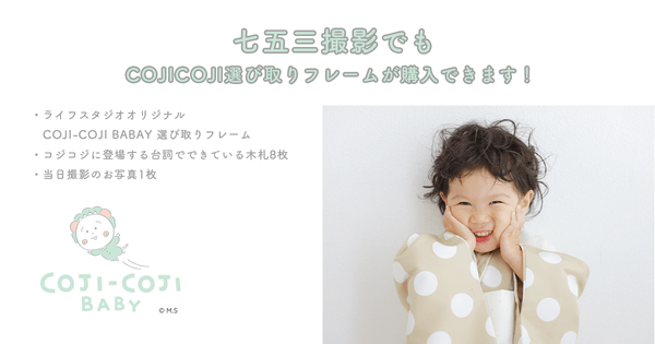 ここでしか手に入らない特別な「COJI-COJI BABY選び取りフレーム」をご用意。