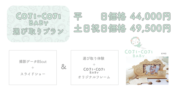 【全店舗】COJI-COJI BABY 選び取り体験付き記念撮影プラン開始