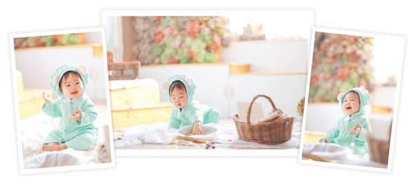写真館を『美しさを表現し、思い出を記録する、楽しい遊びの空間』と定義し、おしゃれなインテリアと新しいスタイルで、自然な表情を引き出す撮影が評判をいただいています。赤ちゃん(ベビー)撮影、キッズ、家族写真、七五三、マタニティ、1/2成人式、成人式、ウェディング撮影まで大切な日々の撮影を行っています。