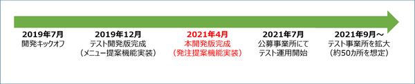 Lappy は 2019 年 12 月に、メニュー提案機能を実装したテスト開発版が完成※5。その後発注提案機能の実装を進め、今回の本開発版完成に至りました。今後 2021 年 7 月より、当社の食材流通子会社である株式会社レオックフーズをご利用の一部事業所からテスト運用を開始。その後改良を経て、年度内の全国展開を目指しております。