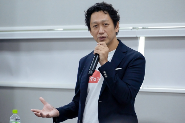 ▼講演を行うジョリーグッド社外取締役の原晋氏