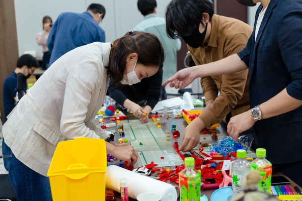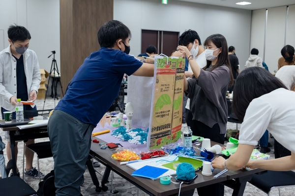 第一部では、テクノロジーとは正反対のワークショップとなる、ガラクタのおもちゃでミニな世界を作る「チーム対抗!みんなで作ろうMiniverse」を実施しました。LEGOブロックやガラクタのおもちゃを使ってアナログなメタバース空間を作り、VRカメラを使用してどんな世界観を構築したかをチーム対抗で競い合い、その過程において、各々がリーダーシップを育むことを狙いとしています。