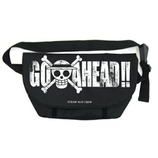GO AHEAD!!の文字とドクロが大胆にデザインされたメッセンジャーバッグです。サイズは縦27cm×横48cmと大きめ!雑誌やノートパソコンも入るから使い勝手がかなりいいですよ◎
