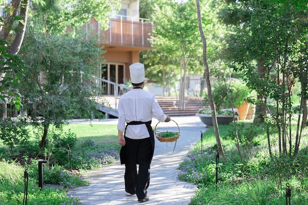 ホテル・ロッジ舞洲では、《庭×食》をテーマに、庭で育てたハーブや地元の新鮮な食材を使用し、心身のバランスを整える朝食メニューを提供しています。冬の澄んだ空気と霧状のミストが広がる美しいガーデンで、五感を満たす贅沢なひとときをお楽しみください。