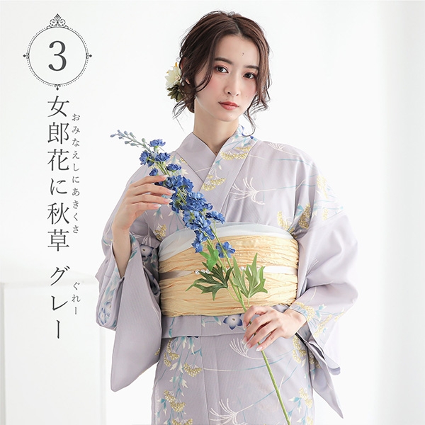 3女郎花に秋草 グレー