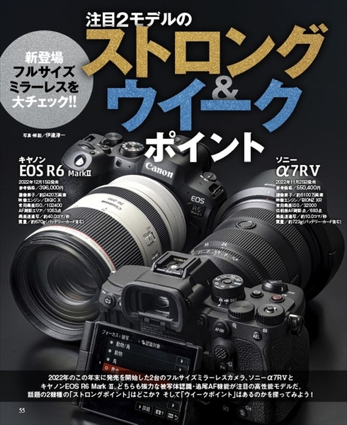 2022年の年末に発売を開始した2台のフルサイズミラーレスカメラ、キヤノンEOS R6 MarkⅡとソニーα7RⅤ。どちらも強力な被写体認識・追尾AF機能が注目の高性能モデルです。この話題の2モデルの「ストロングポイント」はどこか? そして「ウイークポイント」はあるのか? を徹底的に探っていきます。