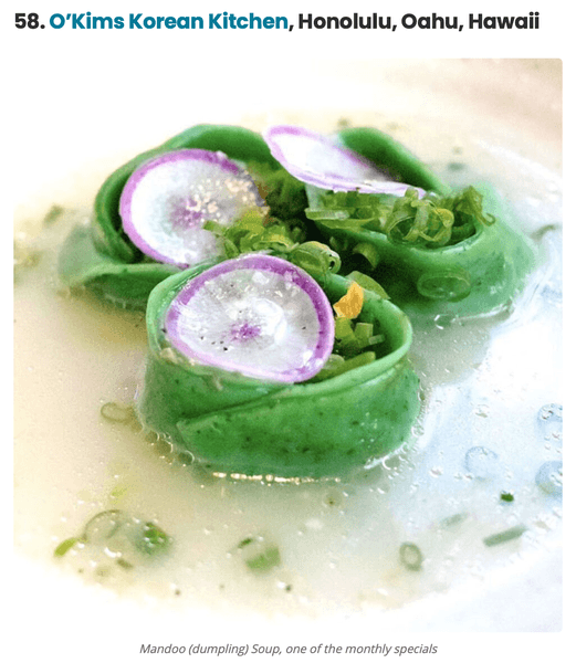 ホノルル、ハワイ(2024年1月23日) - ホノルル 1028 Nuuanu Ave. にある人気の韓国フュージョン・レストラン O’Kims Korean Kitchen(オーキムズ・コリアン・キッチン、オーナー/シェフ:ヒュン・キム)は、YelpのTop 100 US Restaurants 2024(アメリカのレストラン・トップ100)に選出されました。