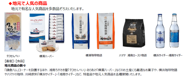 「グランシップ」は、JR東海道線・横須賀線・京浜東北線の「大船」駅とペデストリアンデッキで結ばれた、駅直結の大型複合施設です。地元特産品をはじめ、簡便商品や健康に配慮した商品など幅広い品ぞろえで、お客様のご要望にお応えします。