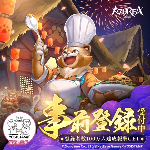 感覚が溶け込むファンタジーライフRPG「AZUREA」事前登録者100万人達成で登録者全員にヨッシースタンプのコラボアイテムをプレゼント