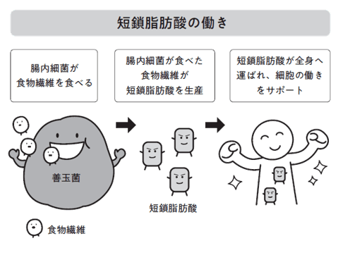 野菜や果物、海藻、豆類、穀物などに含まれる食物繊維は、血糖値を安定させる役割を持っています。特に水溶性の食物繊維は糖の吸収をゆるやかにし、食後血糖の急上昇を防いでくれます。食物繊維は、糖尿病の進行を防ぐうえでとても頼もしい存在となる「短鎖脂肪酸」を生み出す腸内細菌のエサになります。