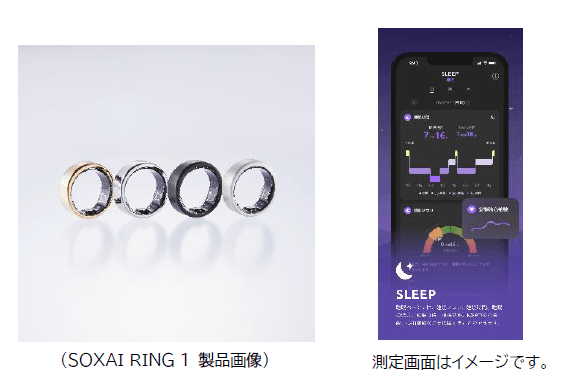 指に装着するだけで、自身の健康状態を“見える化”するウェアラブルリングである SOXAI RING はたった約3 gの軽量な睡眠管理デバイスです。このリングには、AI搭載3D加速度センサー、皮膚温度センサー、光学式心拍センサー、血中酸素センサーなどを搭載しており、100 m防水仕様で、お風呂やプール、サウナでも使用可能です。