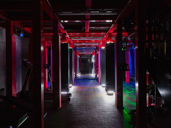 株式会社プラネアールは、サンドバッグを吊し、LED照明を各所に仕込んだ暗闇ボクシングジムの笹塚Aスタジオ地下の最新写真を公開しました。