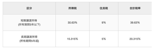 譲渡所得税の税率は、マンションの所有期間によって短期譲渡所得と長期譲渡所得の2つに区分されています。