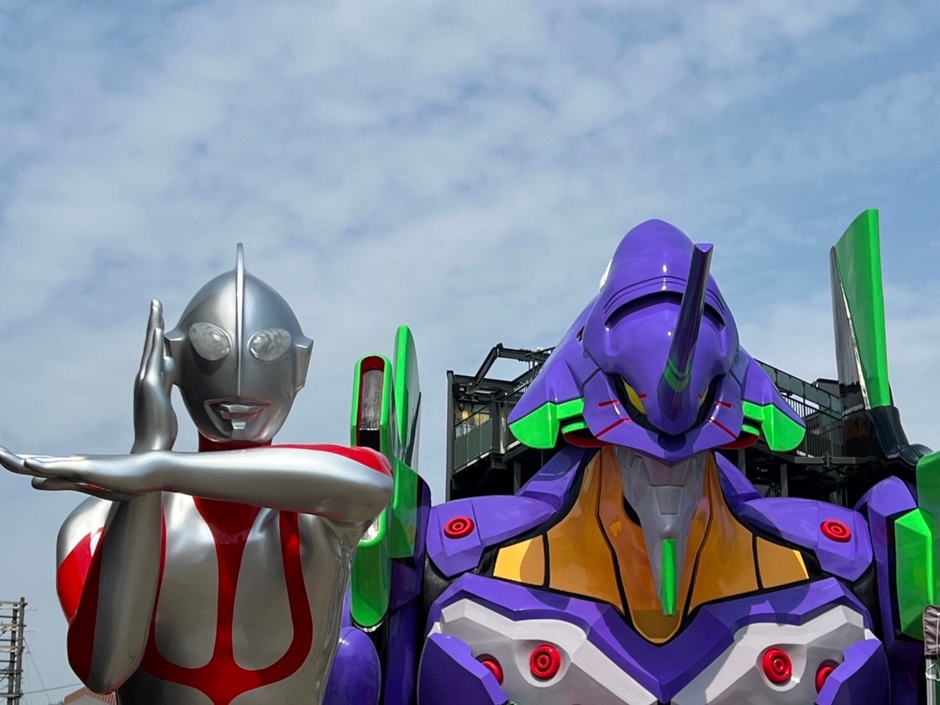 今回の『シン・ウルトラマン』コラボに際し、全高約15mの巨大立像など、かねてより映画村とさまざまな取り組みを行ってきた「エヴァンゲリオン」との夢のコラボが実現。この日本を代表する2大ヒーローの奇跡のツーショットが撮れるのはココだけと話題になっています。