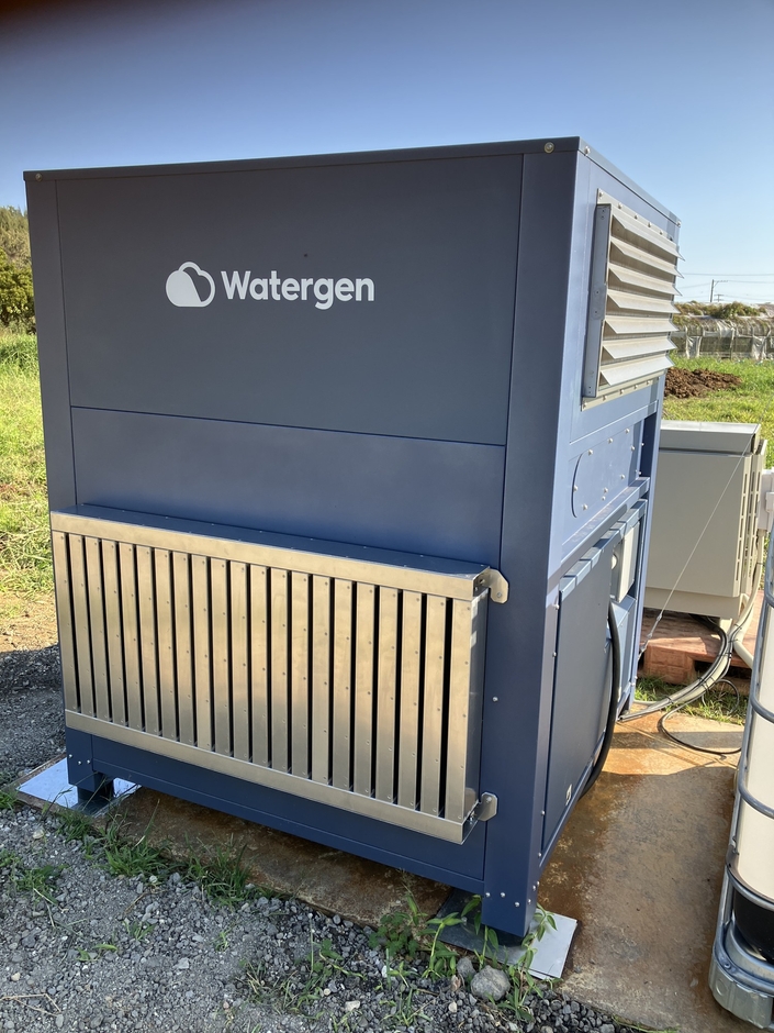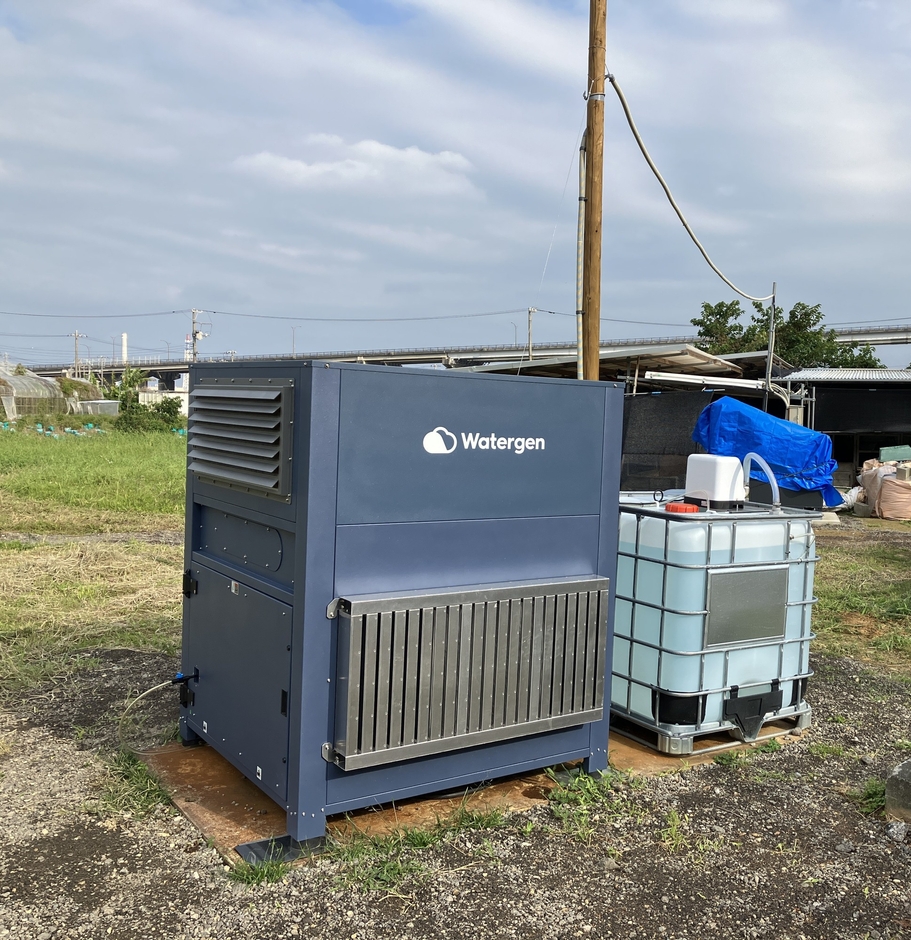 この度の実証実験で使用するAWGは1日最大1,000Lの造水能力を持つWatergen社(イスラエル)の中型機(GEN-M PRO)で、オフグリッドな造水ユニットとなっています。日本での中型機の長期運用による造水量のデータ蓄積を主目的としつつ、造水した水は畜舎の運営・管理やミストシャワー用等に活用する計画です。ミーティッジとしては大規模な水道工事の必要がなくなり、人と牛により快適な農場運営を目指します。