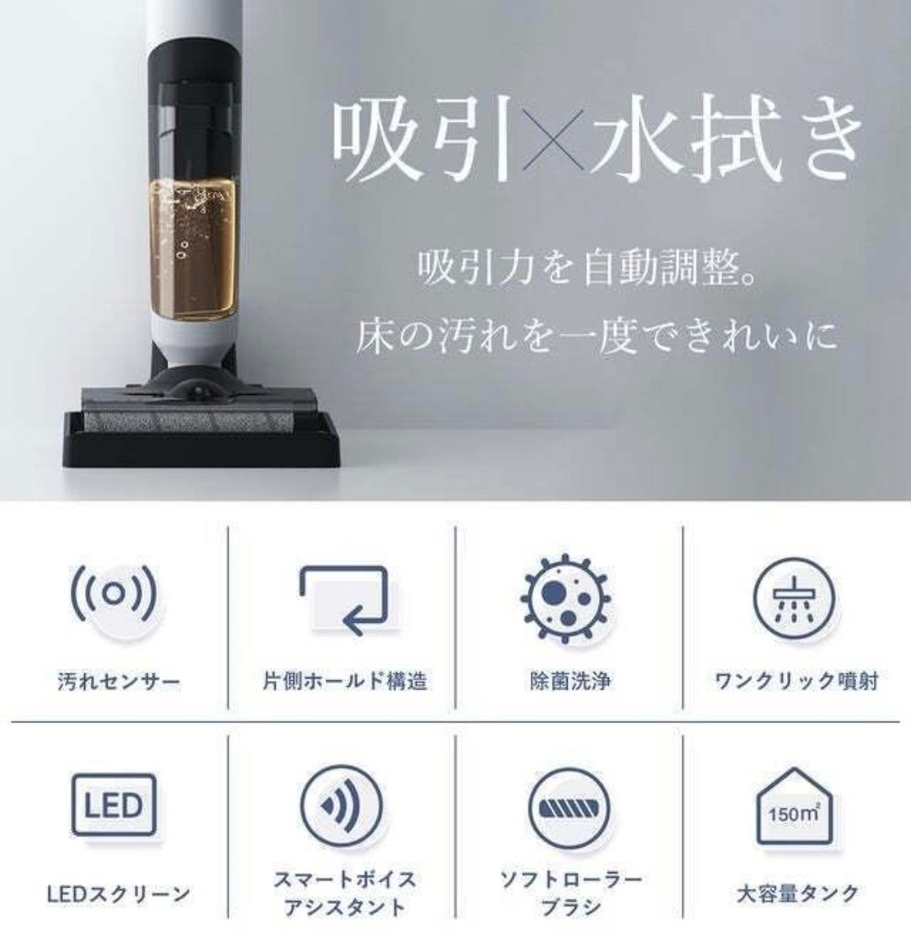 これまでは、まず掃除機をかけて、そのあとでモップやウェットシートで拭き掃除をするという2段階の作業が必要だったのですが、この掃除機は吸引しながら拭き掃除まで完了してくれるので、本当に楽です。