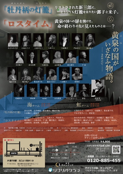 2023 劇団月のシナリオ公演『黄泉の国がいざなふ物語。 「牡丹柄の灯籠」「ロスタイム」』が2023年5月20日 (土) ~2023年5月21日 (日)に座・高円寺2(東京都杉並区高円寺北2-1-2)にて上演されます。