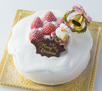 【内容】雪が積もったようなふんわりクリームが魅力の可愛らしいデコレーションケーキ。苺とホイップクリームのシンプルで優しい味わいをお楽しみいただけます。