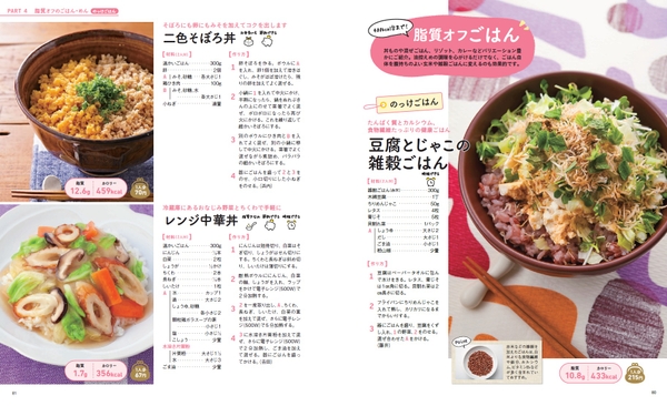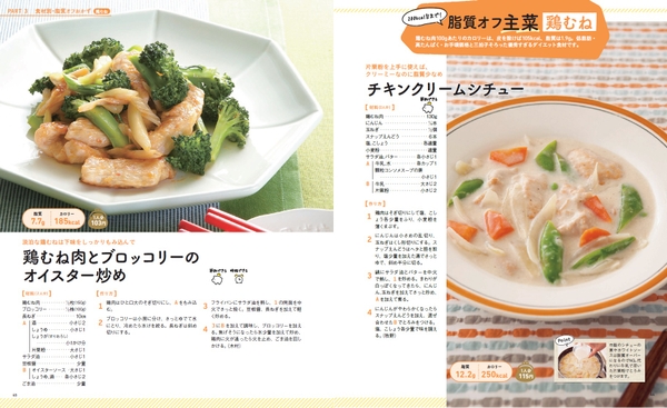 本書ではすべてのレシピに、脂質量・カロリー量・食材費目安を掲載。