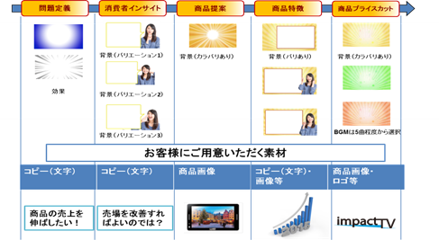 基本構成(テンプレート)の流れ◆ 「年間制作本数500本以上」の店頭販促映像制作のノウハウをもとにした、売上に直結するコンテンツ