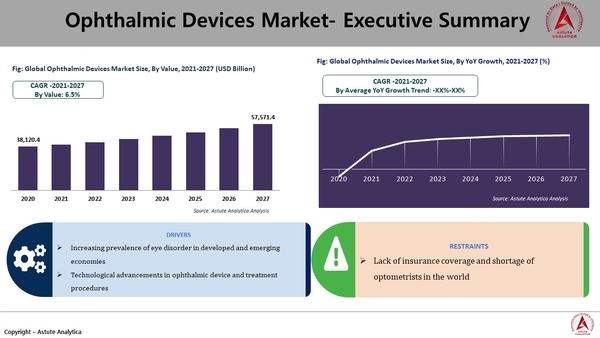 Astute Analytica社が発行したレポート「世界の眼科医療機器市場」によると、世界の眼科医療機器市場は、2021年から2027年の予測期間に570億米ドルに達すると予測されています。また、2027年には、すべての機器の販売台数が28億台を超えると予測されています。世界の眼科用機器市場は、予測期間中に市場から得られる収益が年率6.5%で成長すると予想されています。