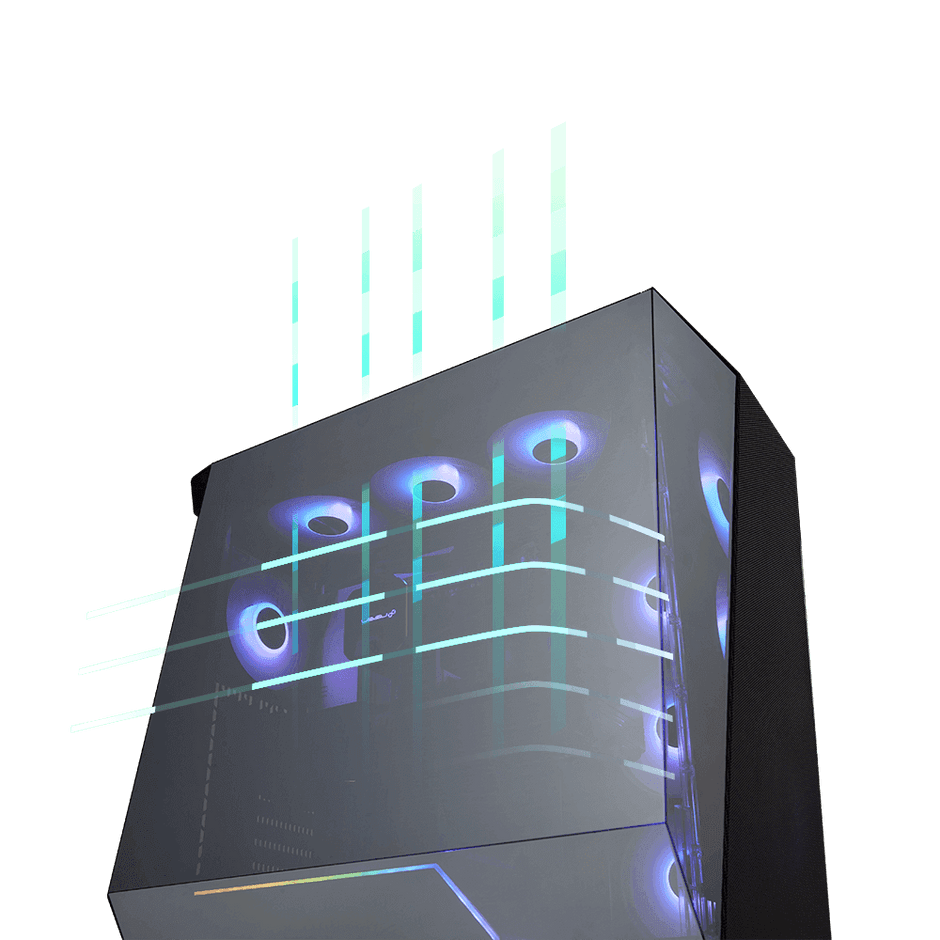 優れたエアフローによる冷却で、最新のハイエンドパーツにも対応、安定したパフォーマンスを発揮することができ、長時間のゲームプレイでも快適な動作を維持、プレイヤーを勝利へと導きます。