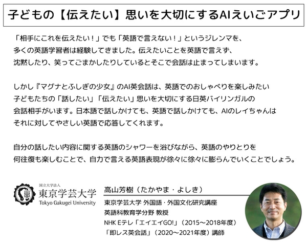 昨年夏、学校内で流行りすぎて公開停止となった英語学習アプリ『マグナとふしぎの少女』は、公開停止後も教育委員会や現場の先生方と協議を進め、学校のGIGAスクール端末でも安心して利用頂けるように、本年7月にアップデートのうえ再公開しました。
