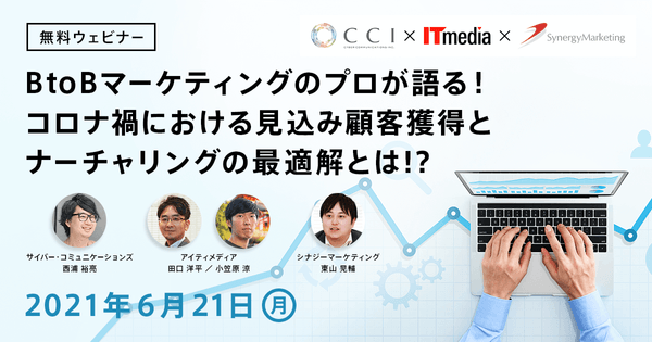 【6/21(月)開催】無料オンラインセミナー:BtoBマーケティングのプロが語る!コロナ禍における見込み顧客獲得とナーチャリングの最適解とは!?